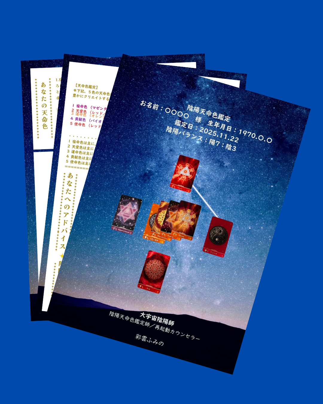 この鑑定は、天命色と陰陽を軸に、今のあなたに合う一行の指針へと整えるもの。 自分では気づけない魅力を一緒に見つけ、比べる自分から“私で選ぶ”自分へ戻るお手伝いをしたいーーその想いで届けています。
